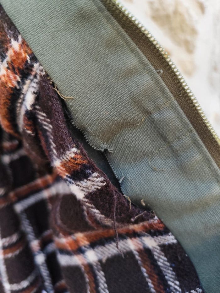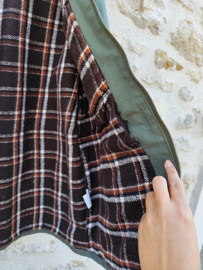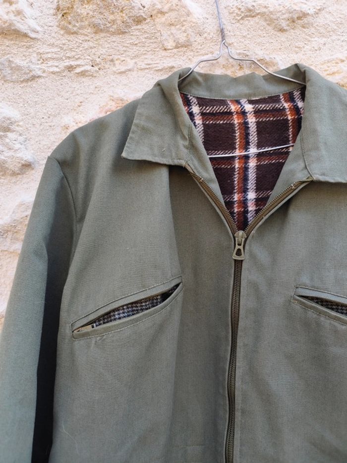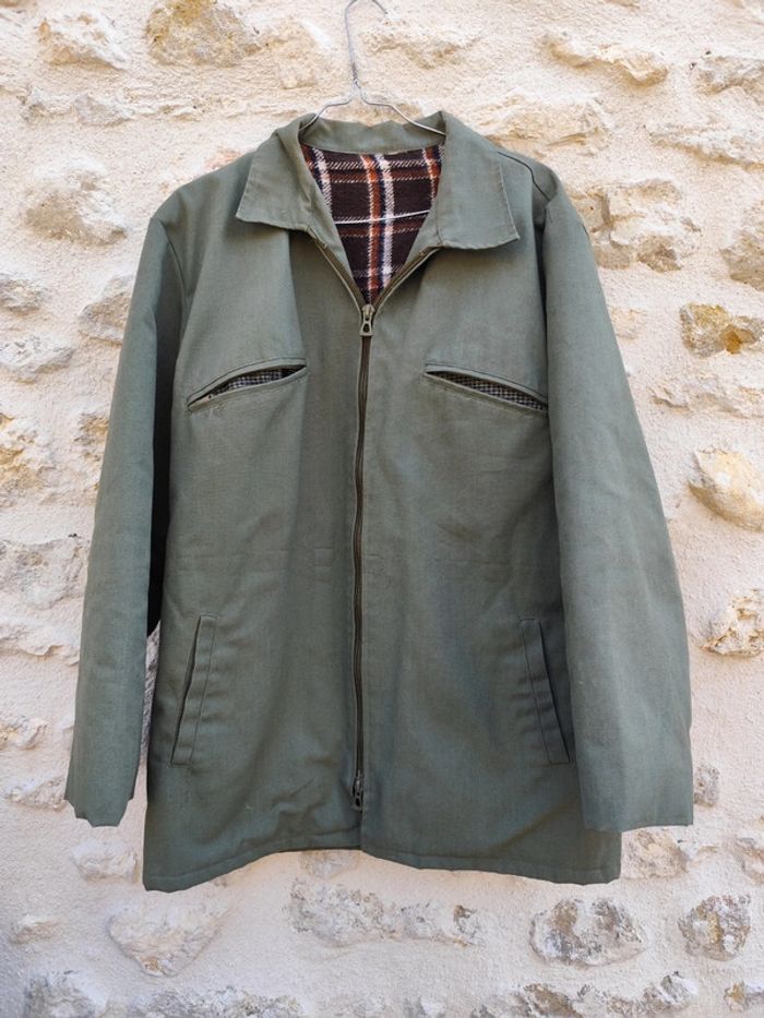 Veste vintage des années 70/80 en très bon état. Couleur : vert kaki Taille : 52 (équivalent XL homme a vérifier par mesures sur demande) Composition : 67 % polyester, 33 % coton – doublure chaude en acrylique à carreaux marron / bordeaux/blanc Fermeture éclair 2 poches poitrine zippées + 2 poches latérales Fabriquée en Tunisie Veste robuste, pratique et confortable, idéale pour un style rétro, workwear ou outdoor. Peut se porter au quotidien ou comme veste de chasse / travail. ✅ Bon état général (voir photos un endroit est déchiré à recoudre facilement) Prix : 👉 100 € (négociable dans la limite du raisonnable) Remise en main propre ou envoi possible via Mondial Relay / La Poste.