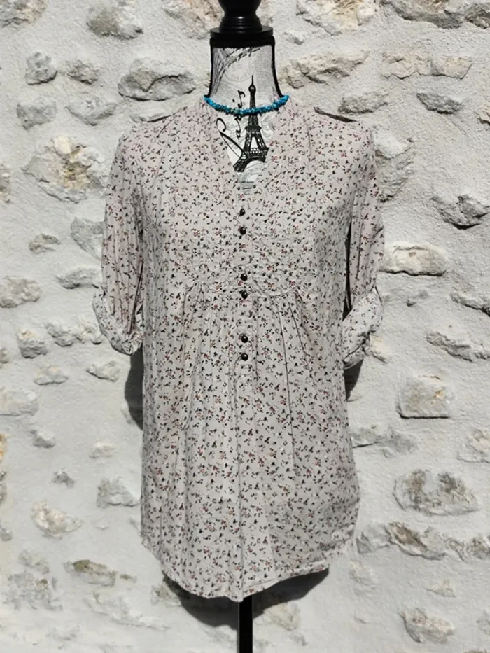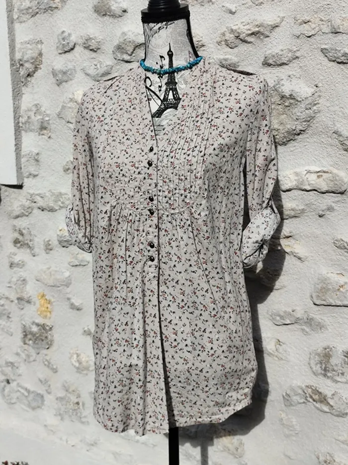 Très joli chemisier ou blouse femme taille 36 motif Liberty beige