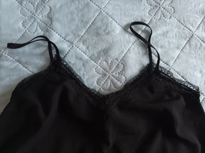 Débardeur noir avec dentelle Kiabi S #vetementsfemmeviolettechti L'argent de chaque vente est reversé aux associations pour les animaux ou je suis bénévole.