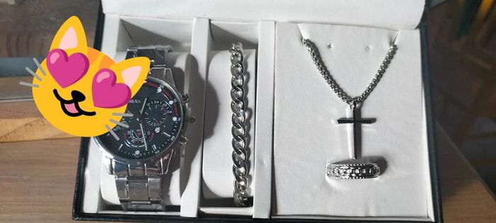 Parure homme argenté 4 pièces montre, bracelet, collier et bague Vendu dans la boite #bijouxviolettechti L'argent de chaque vente es reversé aux associations pour les animaux ou je suis bénévole.