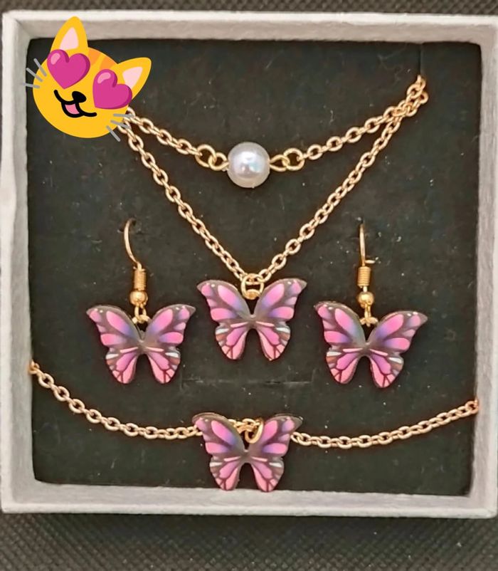 Parure papillons Boucles d'oreilles, collier et bracelet Vendu dans la boîte Neuve #bijouxviolettechti L'argent de chaque vente es reversé aux associations pour les animaux ou je suis bénévole.