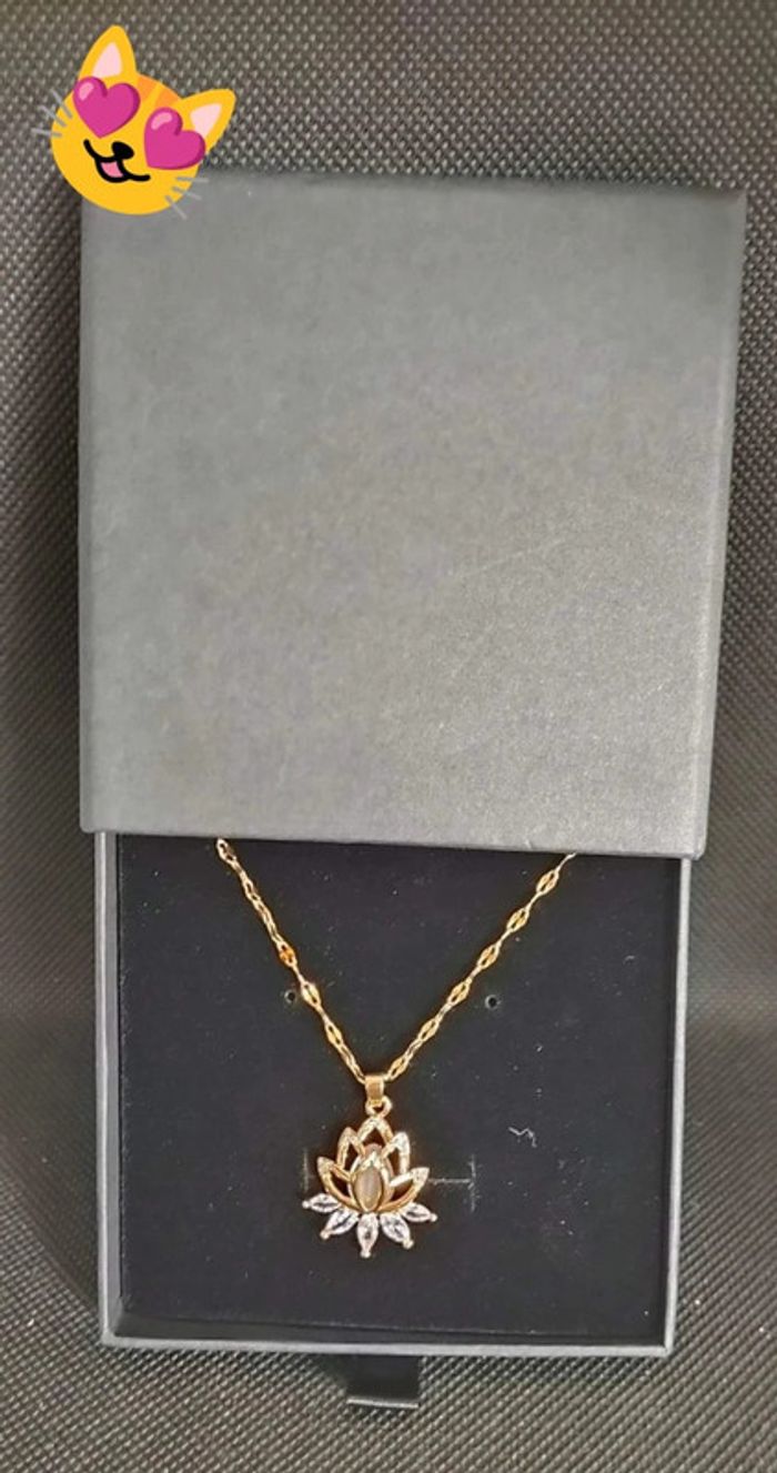 Collier doré pendentif fleur de lotus Vendu dans la boîte #bijouxviolettechti L'argent de chaque vente es reversé aux associations pour les animaux ou je suis bénévole.
