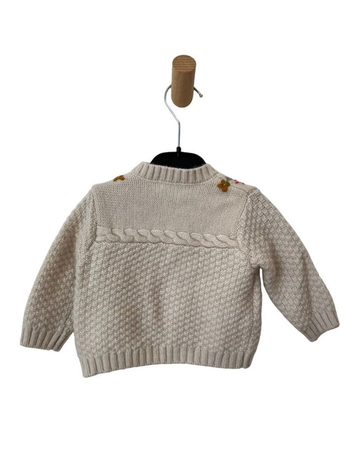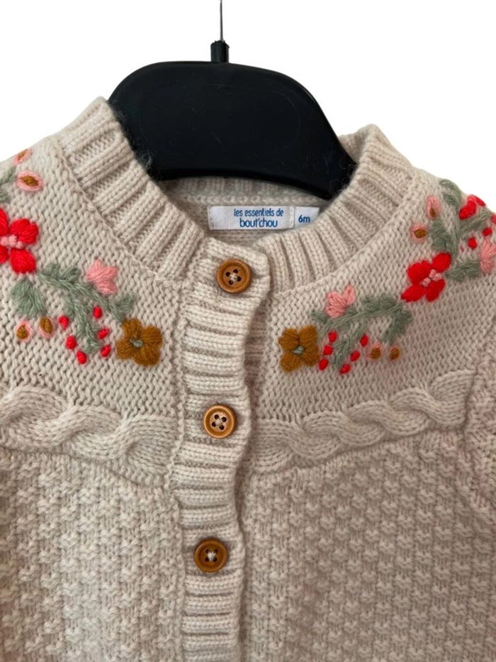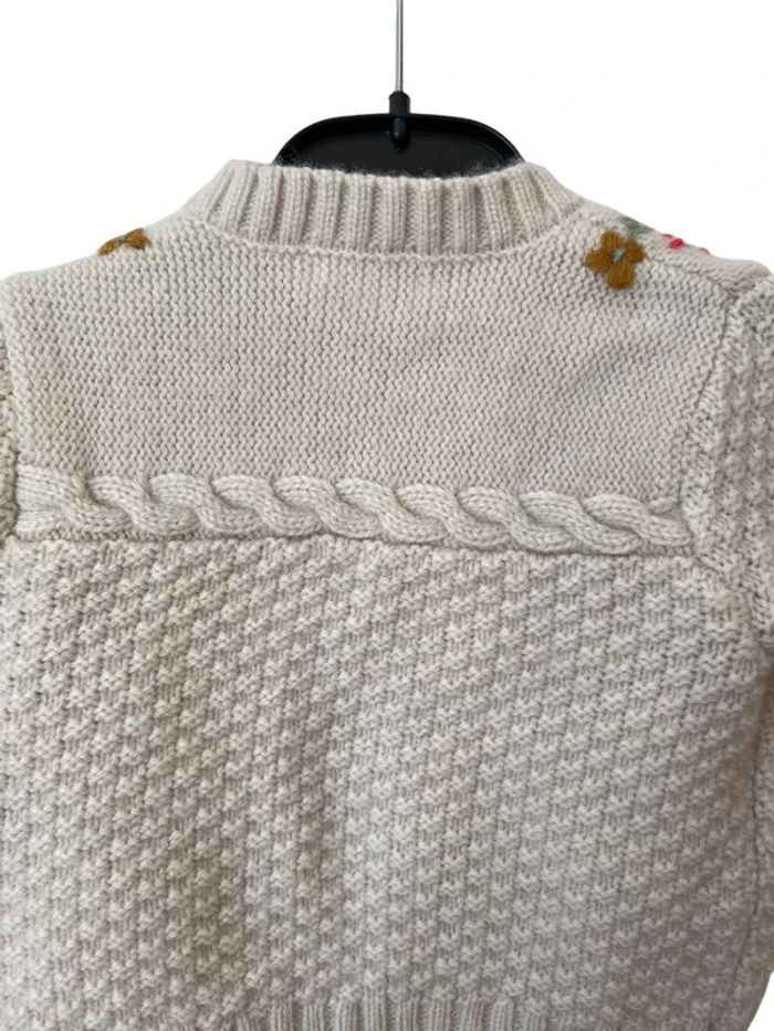 Joli gilet chaud écru fleuri (contient laine)