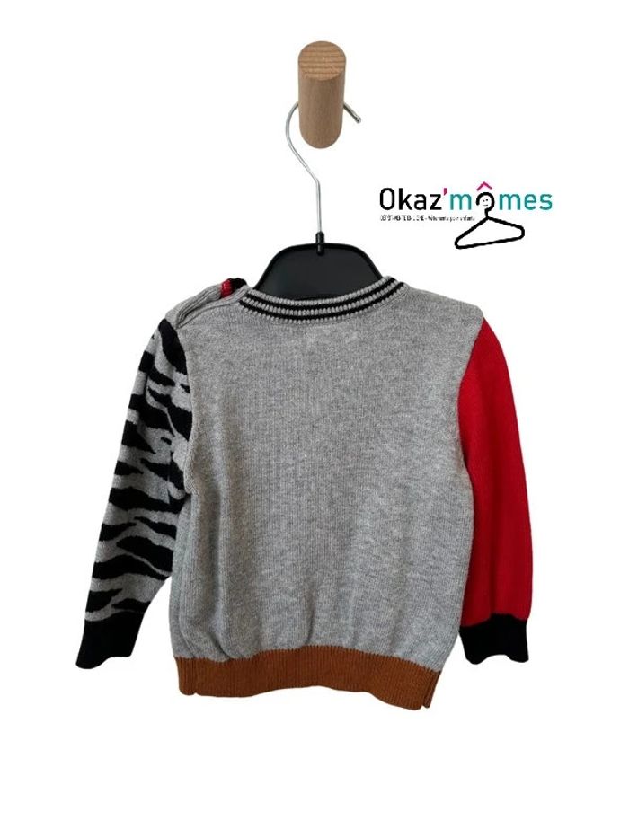 Pull gris, rouge, marron, noir, motif tigre - Catimini 12 mois - photo numéro 2