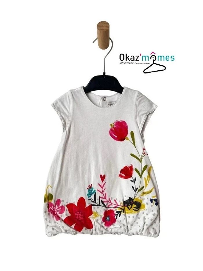 Robe à manches courtes blanche motifs multicolores - Catimini 9 mois - photo numéro 1