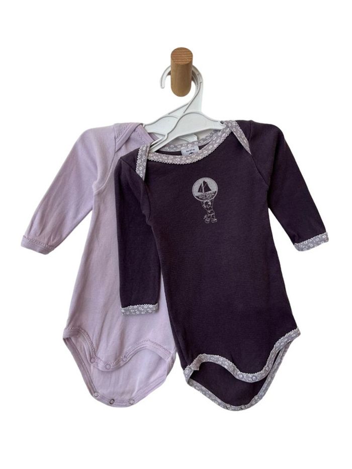 LOT de 2 bodies manches longues violets - Petit Bateau 6 mois (67cm) - photo numéro 1