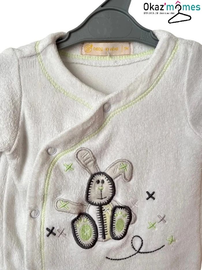 Pyjama velours blanc et vert anis (lapin) - Gémo 1 mois - photo numéro 2