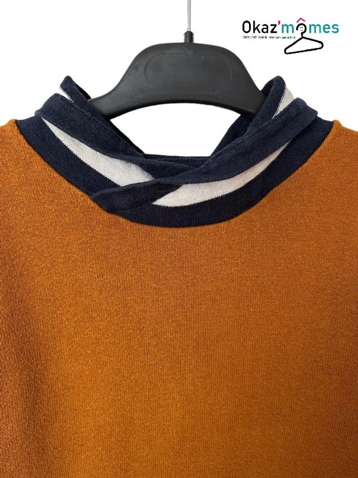 Pull fin camel avec col rayé marin - Kiabi 8 ans - photo numéro 4