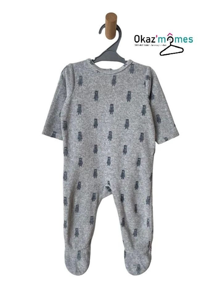 Pyjama en velours gris, motifs ours - Bout'chou 9 mois - photo numéro 1