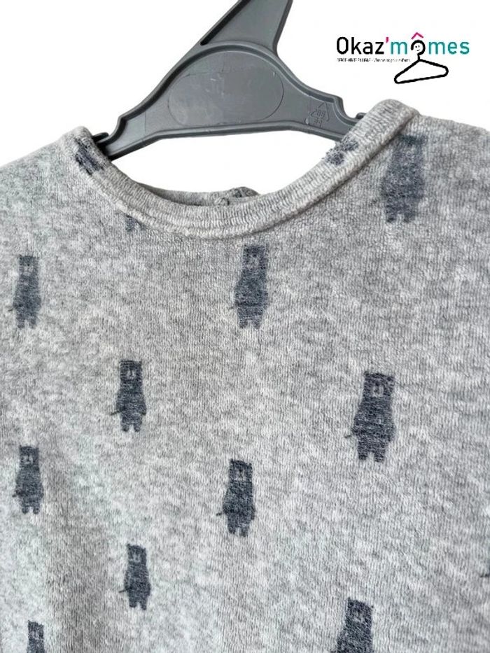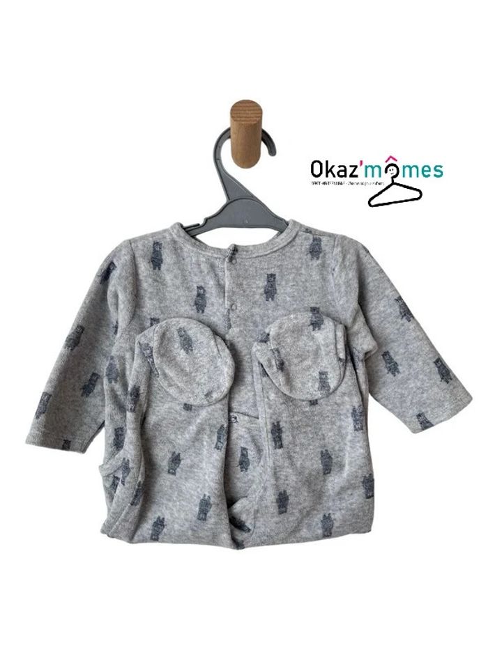 Pyjama en velours gris, motifs ours - Bout'chou 9 mois - photo numéro 3