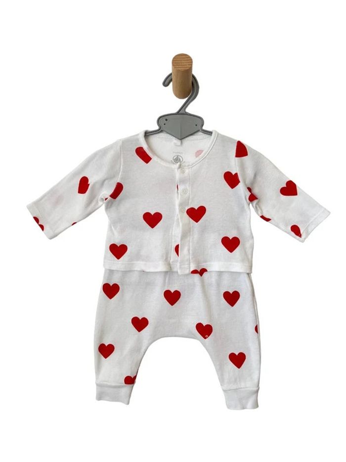 Ensemble bébé blanc à cœurs rouges constitué de :
