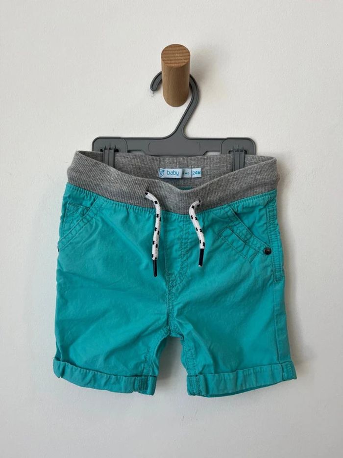 Short en toile de coton bleu turquoise - Gémo 24 mois - photo numéro 1