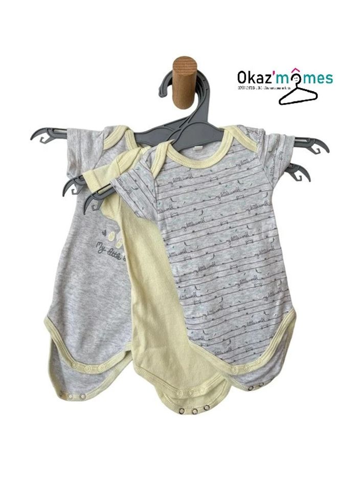 LOT de 3 bodies à manches courtes gris et jaune - 3 mois (62cm) - photo numéro 1