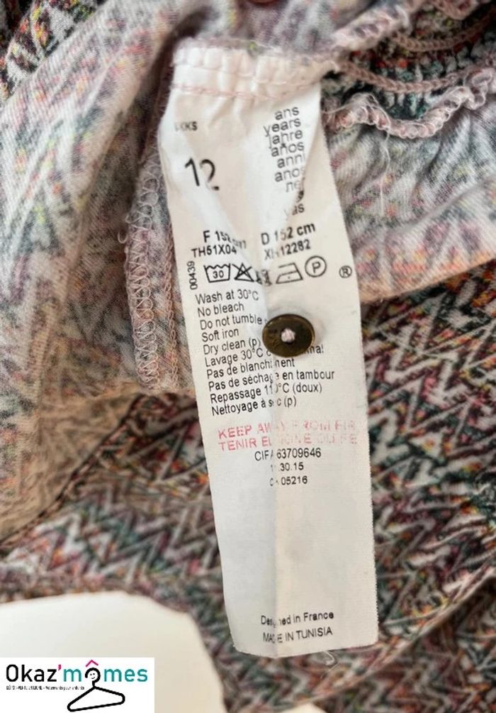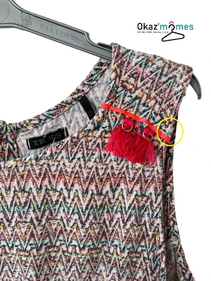 Blouse sans manches multicolore marque IKKS légère et fluide (100% viscose) rangée de boutons dans le dos (il en manque un mais il peut être recousu car le bouton de rechange est présent sur l'étiquette) réf. 2000690 Taille 12ans 12a (152cm) d’après l’étiquette, mais ⚠️ j’ai classé ce vêtement dans la rubrique “10 ans” car il taille petit ⚠️ Très bon état général mais présence de petits défauts (entourés en jaune sur les photos zoomées) : - ⚠️ petit trou / trace d’usure sur la bretelle gauche - ⚠️ il manque un bouton au milieu du dos mais le bouton de rechange est présent sur l’étiquette à l’intérieur du vêtement **************************** Pour voir tous les articles que je propose dans cette taille afin d'économiser sur les frais de port : #filleokazmomes10ans **************************** [LOTS : Si plusieurs articles vous intéressent, n’hésitez pas à me contacter pour que je crée l’annonce correspondant au lot que vous souhaitez ! Vous économiserez ainsi sur les frais de port :-) ] #okazmomes #10ansokazmomes #filleokazmomes10ans #ikks #blouse #top #ikks #étéfille #modefille #secondemainenfant