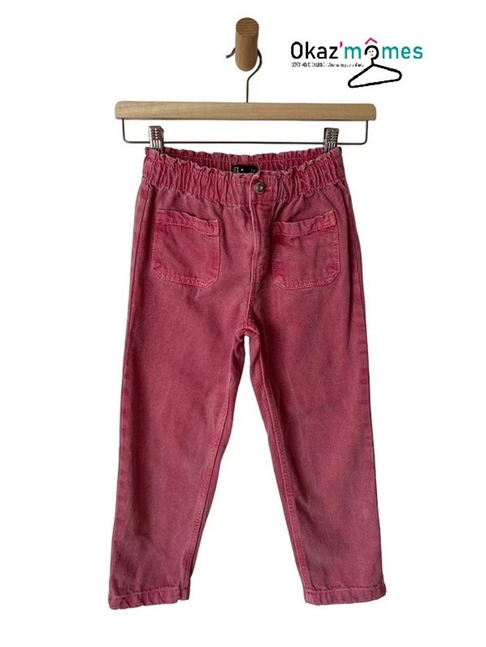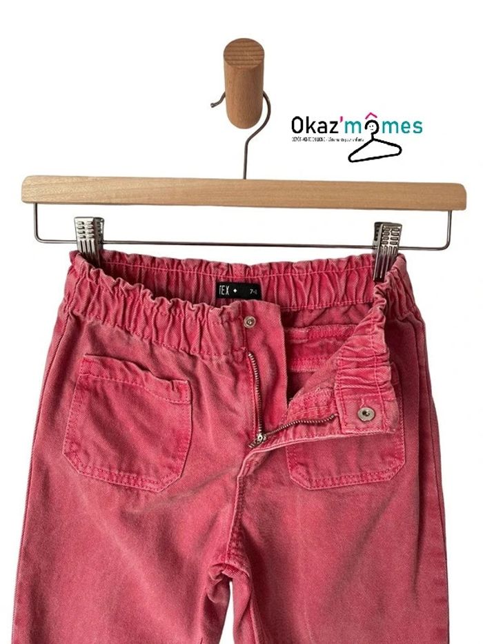 Jean / pantalon denim rose/rouge délavé - TEX 7-8 ans - photo numéro 3
