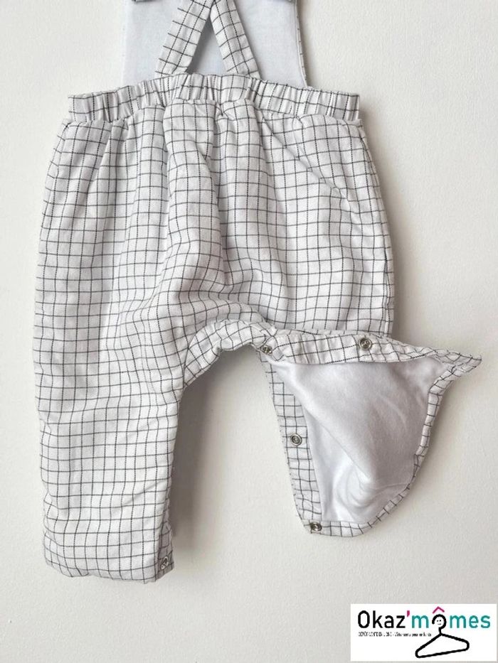 Salopette molletonée blanche à carreaux - Jacadi 6 mois (67cm) - photo numéro 2