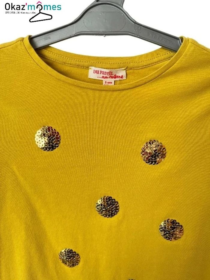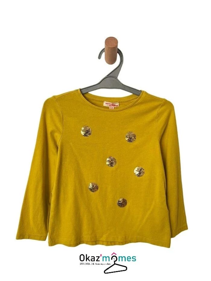 T-shirt manches longues moutarde à sequins - DPAM 5 ans - photo numéro 1