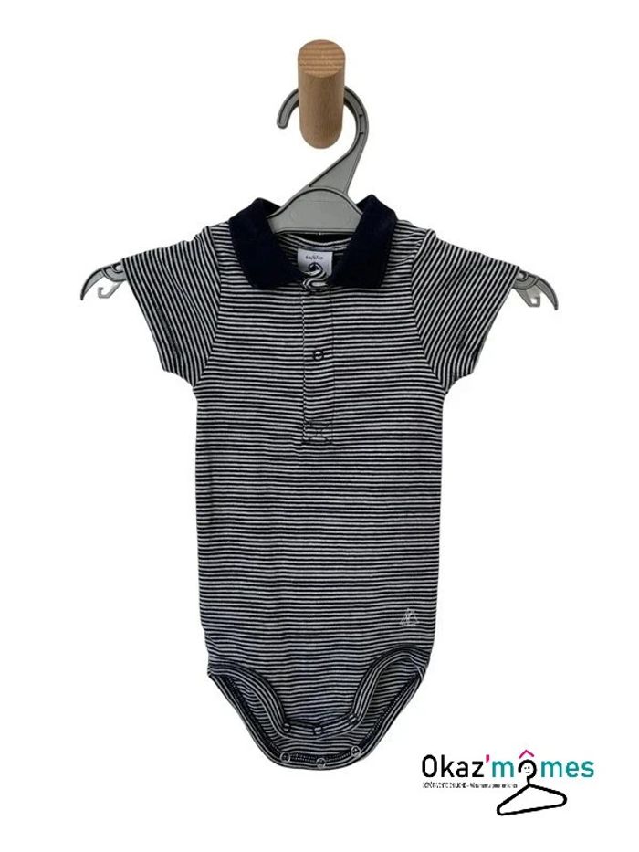Body manches courtes milleraies marine avec col - Petit Bateau 6 mois (67cm) - photo numéro 1