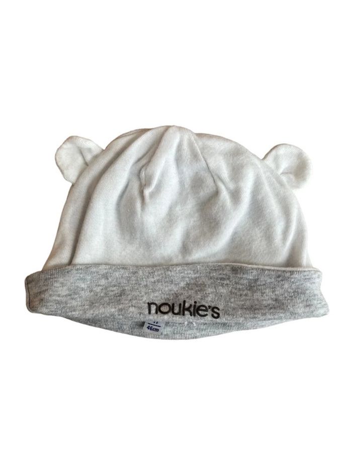 Bonnet bébé en coton blanc et gris à oreilles - Noukie's T1 46cm