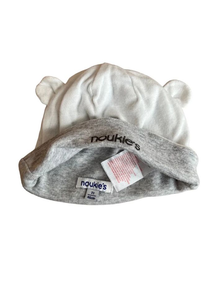 Bonnet bébé en coton blanc et gris à oreilles - Noukie's T1 46cm - photo numéro 1
