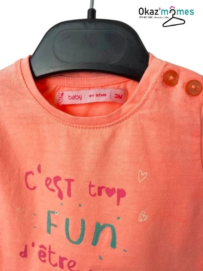 T-shirt orange “c’est trop fun d’être une fille” - Gémo 3 mois