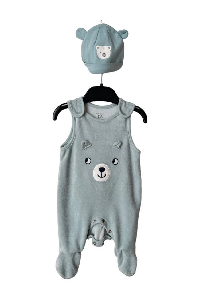 Ensemble pyjama + bonnet couleur vert d'eau - C&A 1 mois (56cm)