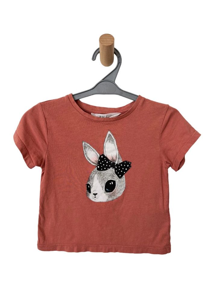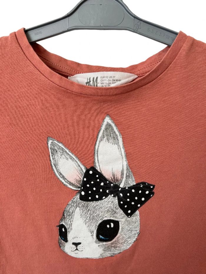 T-shirt manches courtes rose motif lapin - H&M 92cm (2 - 3 ans) - photo numéro 1