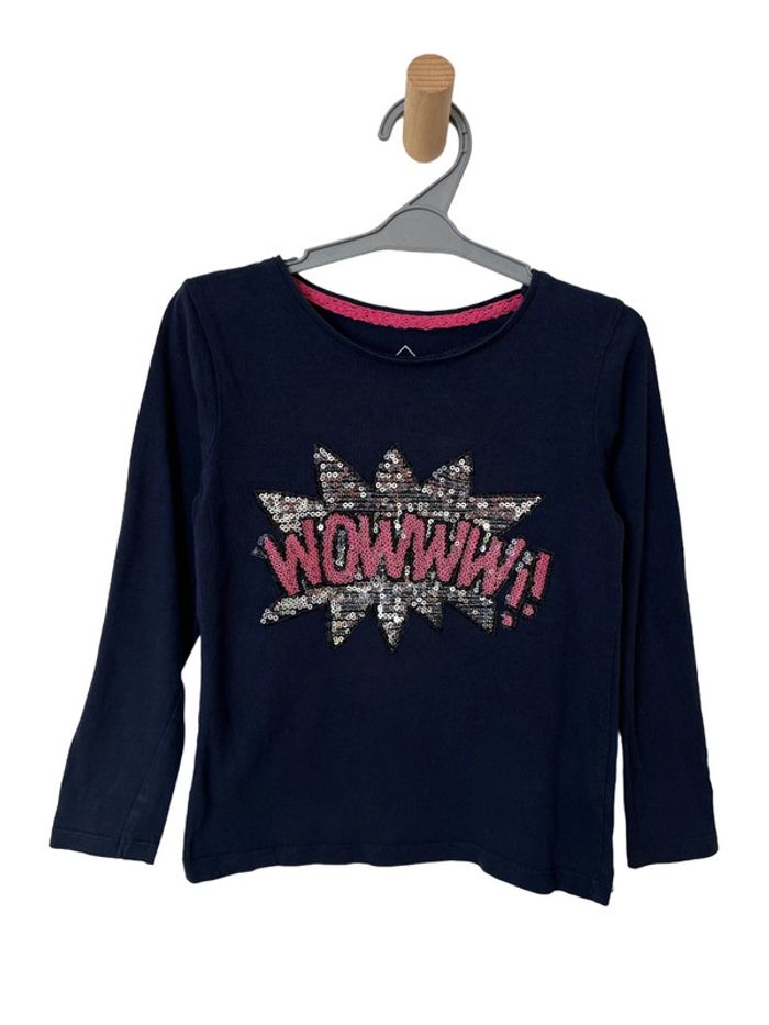 T-shirt à manches longues à sequins “Wowww” - Tex 7-8 ans - photo numéro 1