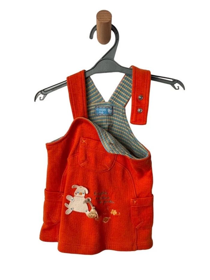 Robe orange à larges bretelles marque CANARI Baby tissu épais 85% coton, 15% polyester motif en relief, inscription “Lupin travaux de jardin” larges bretelles réglables sur 2 niveaux grâce à des boutons-pressions idéale pour la mi-saison taille 12mois 12m très bon état réf. 2000804 Pour voir tous les articles que je propose dans cette taille afin d'économiser sur les frais de port : #filleokazmomes12mois [LOTS : Vinted ne propose pas la fonctionnalité « Acheter en lot » pour les vendeurs professionnels. Si plusieurs articles vous intéressent, n’hésitez pas à me contacter pour que je crée l’annonce correspondant au lot que vous souhaitez !] #okazmomes #12moisokazmomes #filleokazmomes12mois #bébéokazmomes #robe12mois #bébéfille