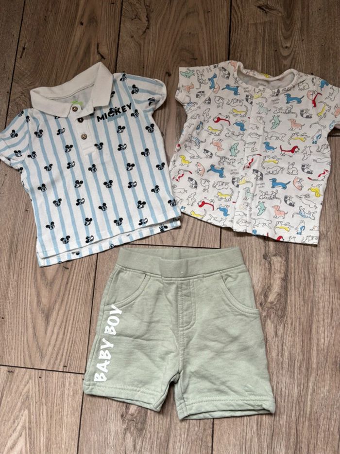 Ce lot comprend Un polo Mickey Disney 6 mois Un t-shirt petit bateau 6 mois Un short 6 mois