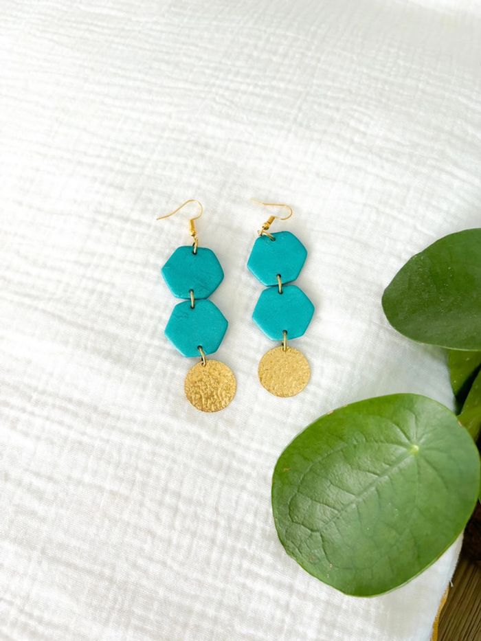 Boucles d’oreilles turquoises dorées