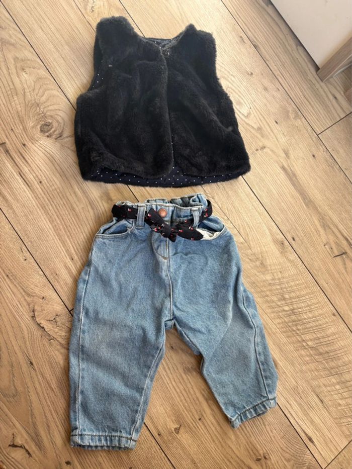 Joli gilet de berger noir tout doux Kiabi taille 18 mois Très bon état Doublure à pois