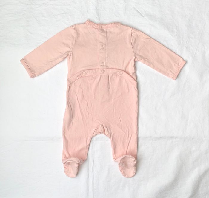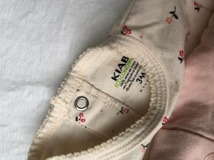 Taille 3 mois, étiquette effacée mais c’est bien du 3 mois. Cf photos avec un autre pyjama de la même taille.