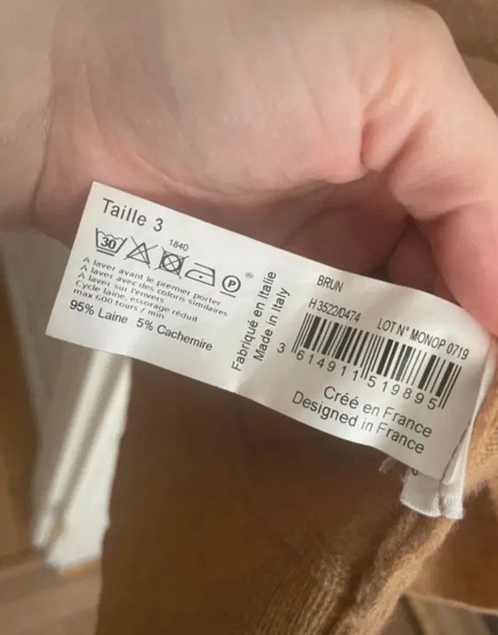 ~ Bon état ~ couleur : Camel / beige ~ taille : 3 ~ marque : Monoprix ~ cachemire et laine #cachemireetlaine #pullmonoprix #madeinitaly