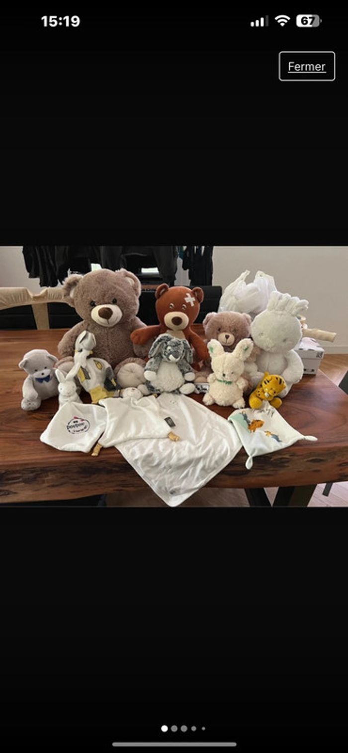 Lot doudou mais possibilité d'acheter à l'unité Contacter en privé pour prix à l'unité ou faire une proposition Marques diverses, plus d'informations en privé Tous les doudous sont neufs sans étiquette mon fils avait déjà adopté son propre doudou et donc n'a jamais utilisé tout cela.