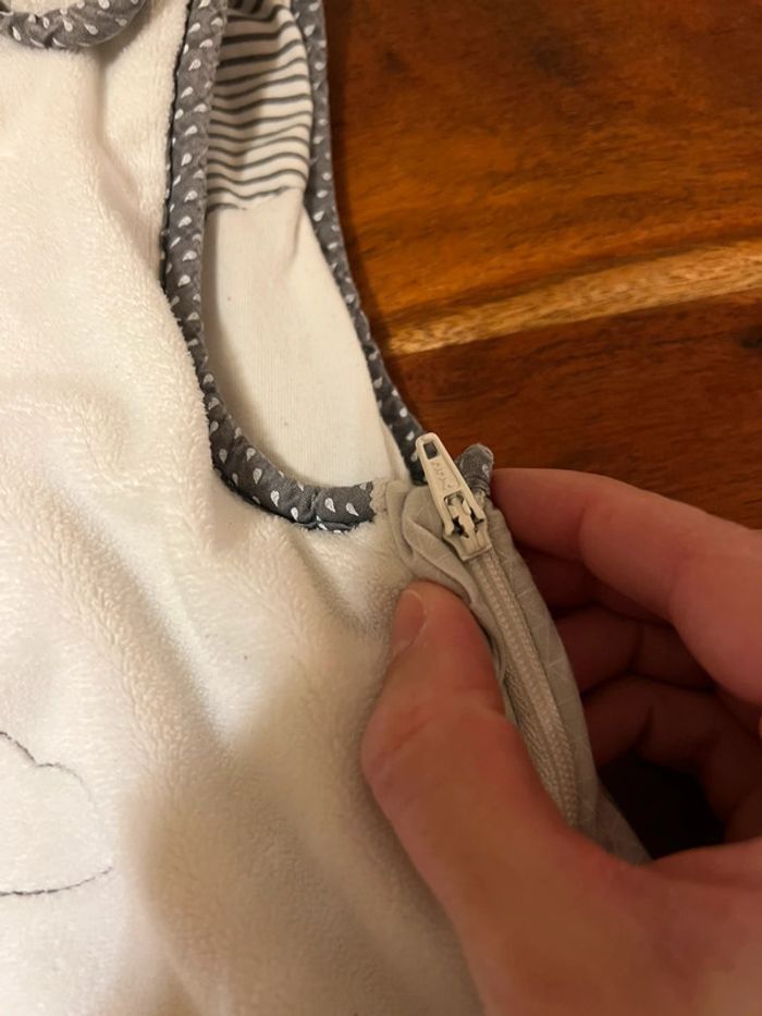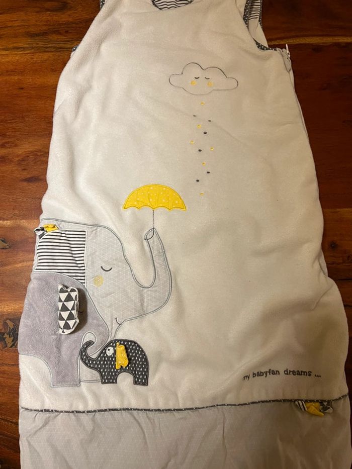 Gigoteuse chaude sauthon babyfan 6/24mois Peinture fermeture éclair un peu enlevé Petit trou qui a été recousu à l’intérieur de la Gigoteuse Voir photos