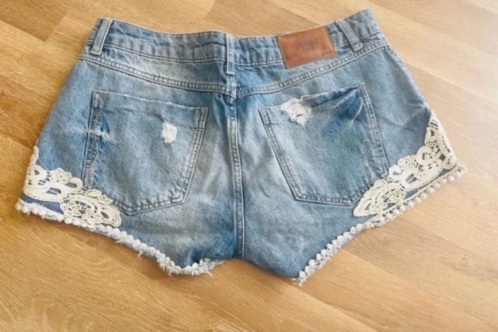 Bon état ( petite tache qui ne se voit quasiment pas voir dernière photo). ~ correspond à une taille 38 ~ marque : Zara #shortzara #shortjean #shortdentelle