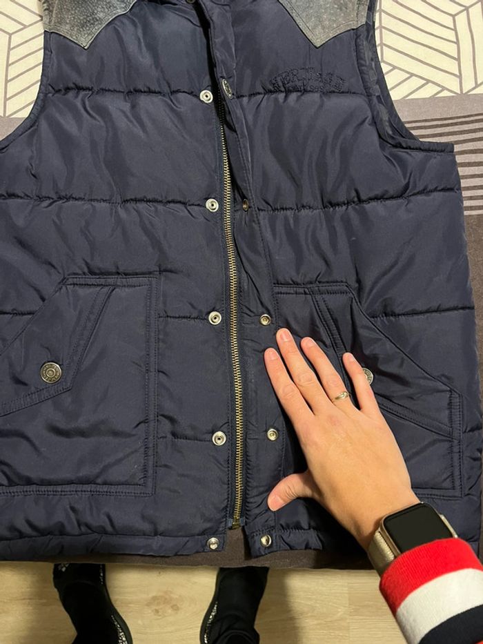Veste sans manche le temps de cerise Taille M Femme Les couleur du tissu sur les épaule et en haut du dos sont passé un peu avec le temps Très bien pour jardiner ou autre dehors