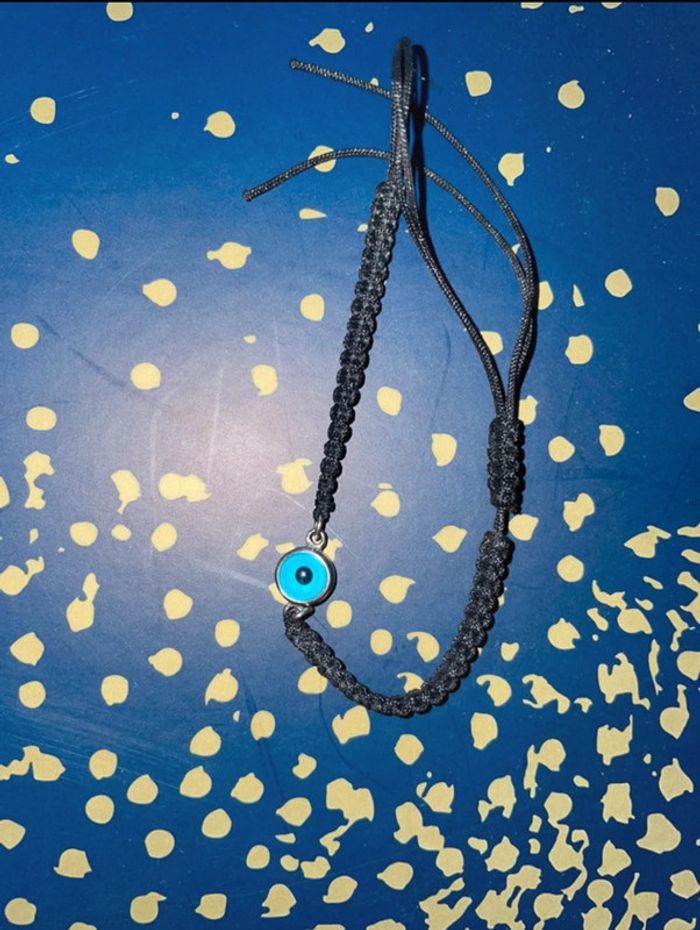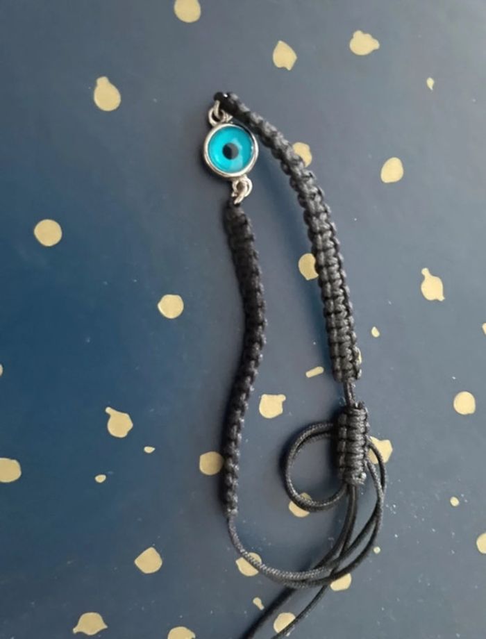 Oeil en argent sur cordon. Bon état #braceletportebonheur #braceletoeil #braceletargent