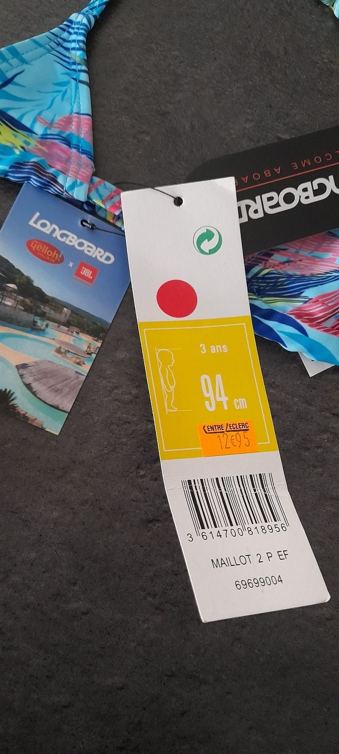 maillot 2 pièces 3 ans Longboard. Le haut neuf avec étiquette, le bas porté 2 ou 3 fois.