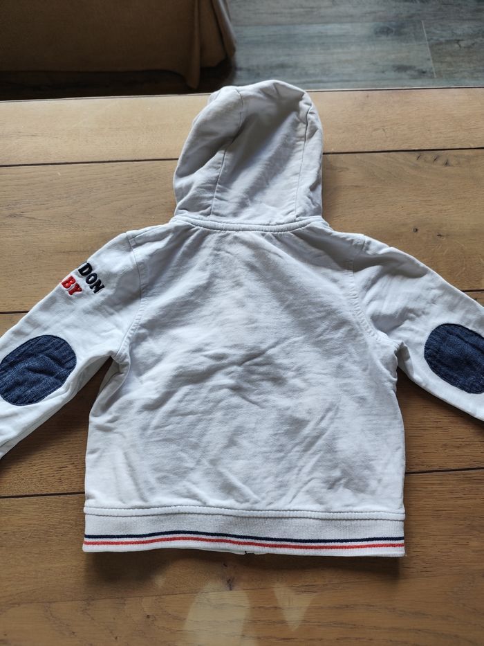Veste garçon avec capuche taille 18 mois Fermeture éclair Liseré marine et rouge Petites poches avec pressions Coudes empiècement jean