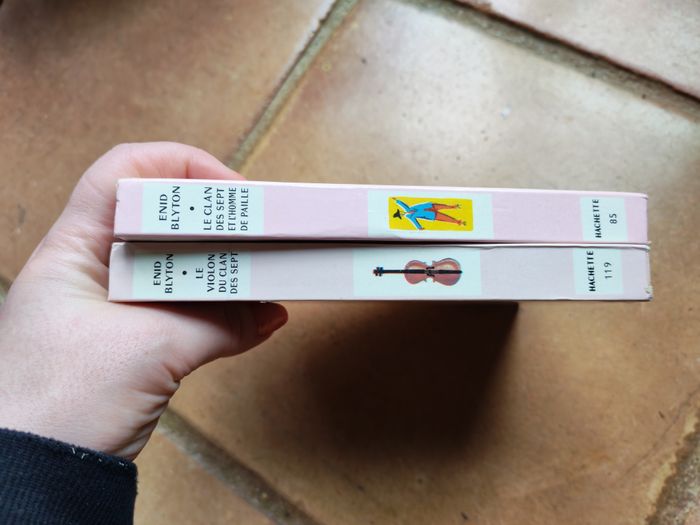 Vends lots de 2 livres de la « Nouvelle Bibliothèque Rose », Hachette, sur le Clan de sept, d’Enid Blyton. Le prix est celui du lot, qui pèse 275g. Me demander si à l’unité. Les titres sont : - le violon du clan des sept (1970) excellent état - le clan des sept et l’homme de paille (1970)