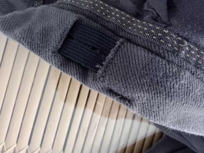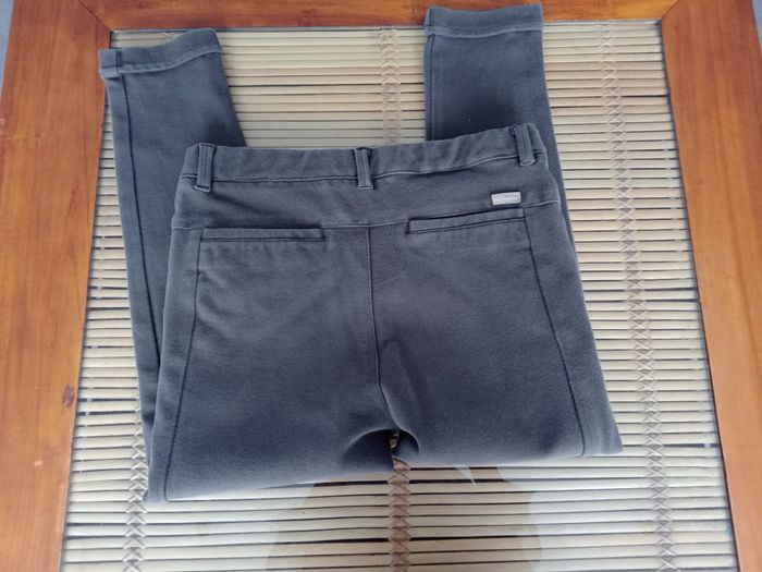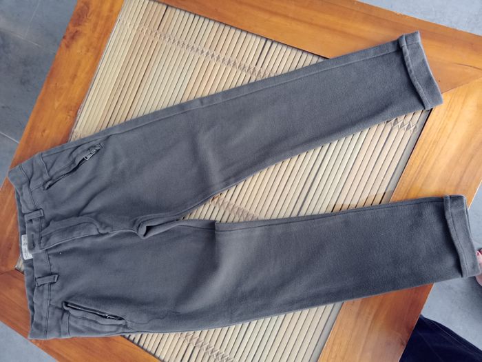 Joli pantalon couleur kaki, avec des fermetures éclair au niveau des poches, réglable à la taille, en parfait état