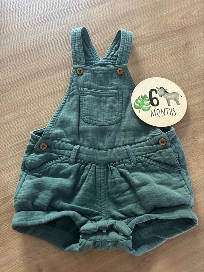 Salopette short verte gaze de coton - photo numéro 1