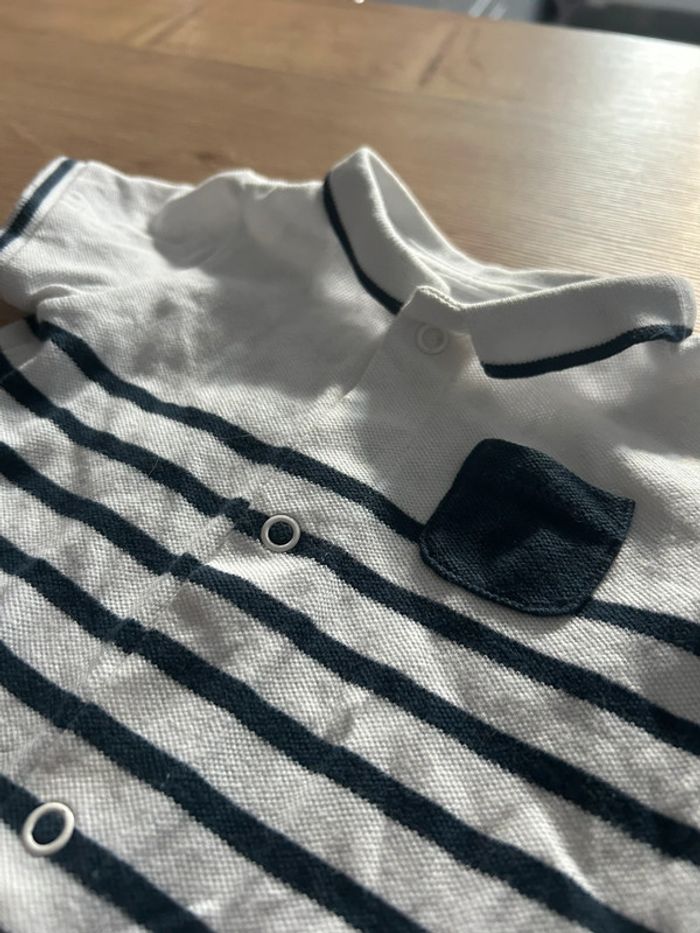 Body polo marinière. Couleur blanc et bleu marine. Parfait quand il fait chaud à mettre que ça avec un short. En très bon état. Taille 6 mois de la marque Obaïbi 📦 Envois rapide et soignée. 📢 Remise activée jusqu'à 15%, et payé qu'un seul frais d'envois ! #tetell29_bbgarcontaille6mois #Polo #Body #Obaibi #Boy #Baby #Mariniere #Rayure #TBE #Quimper