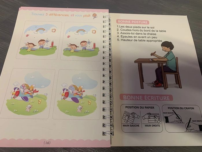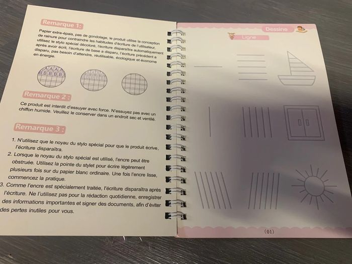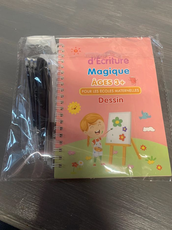 Cahier Magique | Améliorez l’écriture de vos enfants en 10 jours 1 cahier, 1 stylo avec 5 recharges d’encre magique Aidez vos enfants à améliorer l’écriture des chiffres, des lettres et même du dessin. Conduite optimale du stylo : Les rainures intégrées à chaque page facilitent la formation des lettres et chiffres. Apprentissage sans stress : Avec l’encre magique, dites adieu aux erreurs définitives. Après 10 minutes, l’encre s’efface, prête à être réutilisée. Réutilisation infinie : le cahier magique peut en effet être utilisé indéfiniment avec l’encre magique !