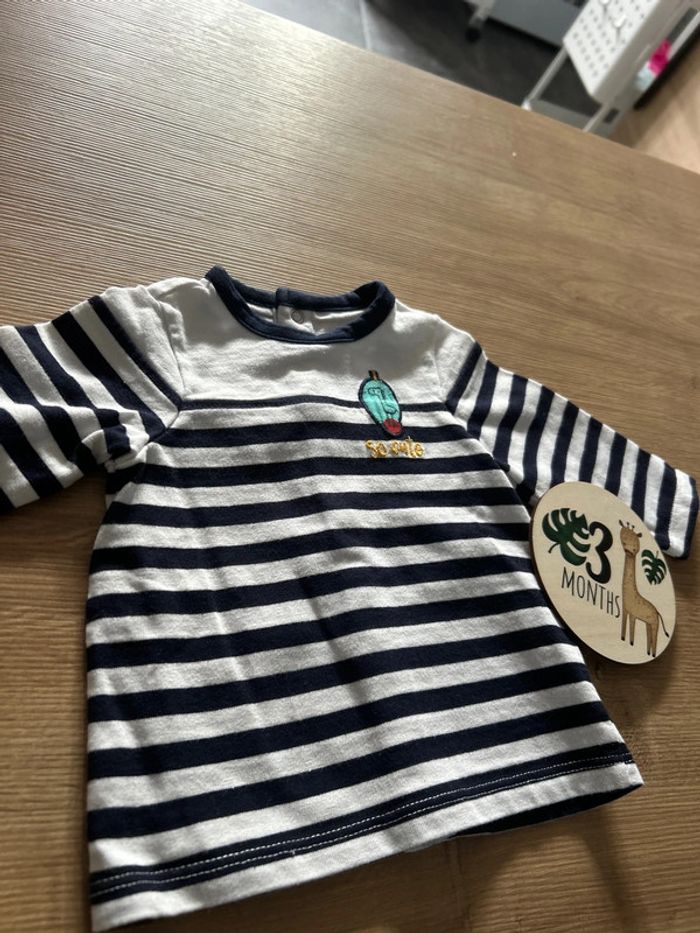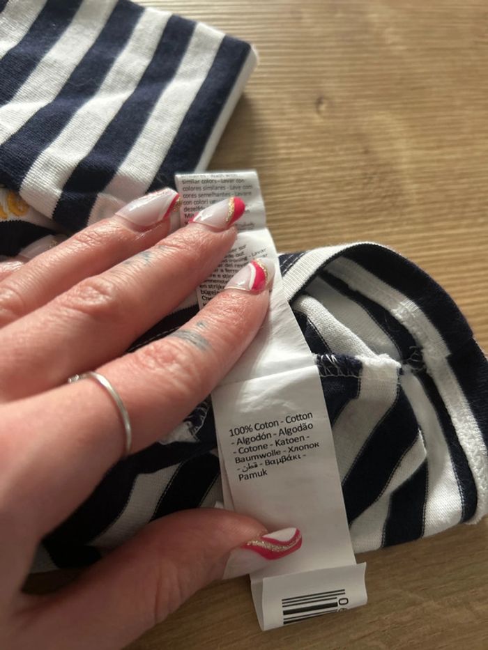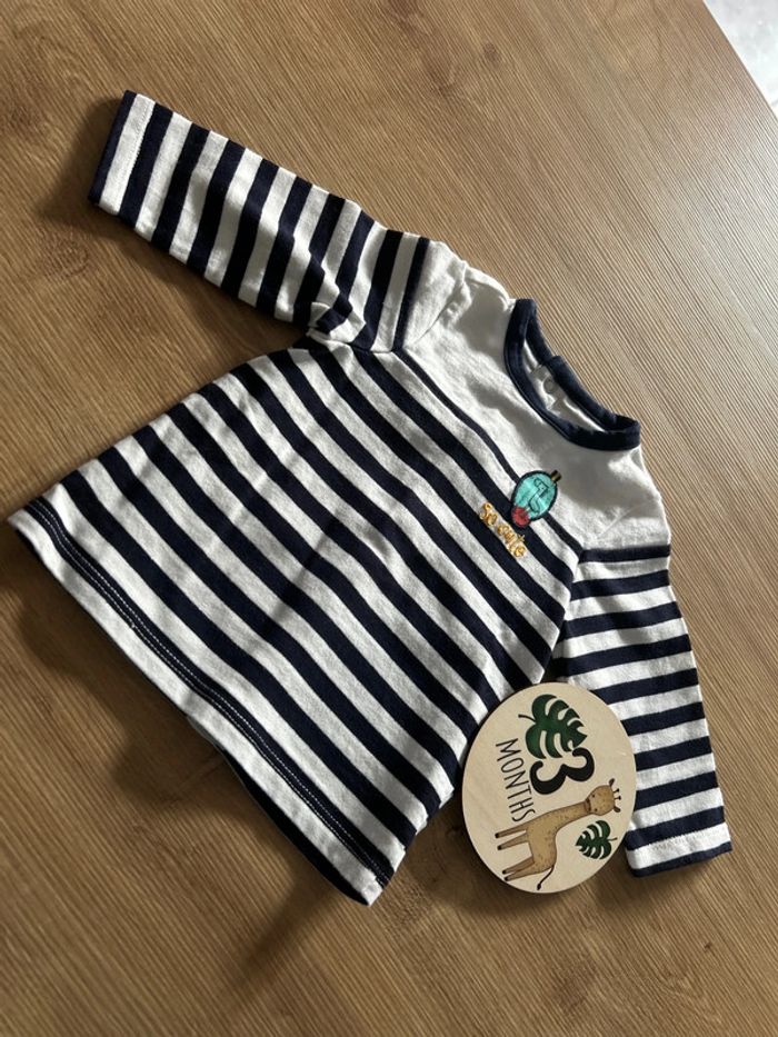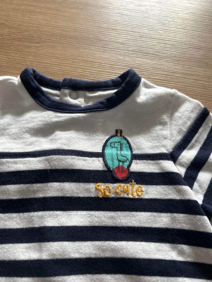 T shirt manches longues Marinière bleu marine et blanc avec petit patch et inscription « So Cute ». Pressions sur tout le long du dos pour faciliter à l’enfiler. 100% coton (T-shirt assez épais.) Taille 3 mois de la marque Orchestra 📦 Envois rapide et soignée. 📢 Remise activée jusqu'à 15%, et payé qu'un seul frais d'envois ! #tetell29_bbgarcontaille3mois #Orchestra #Garcon #Tshirt #Mariniere #Coton #Bebe