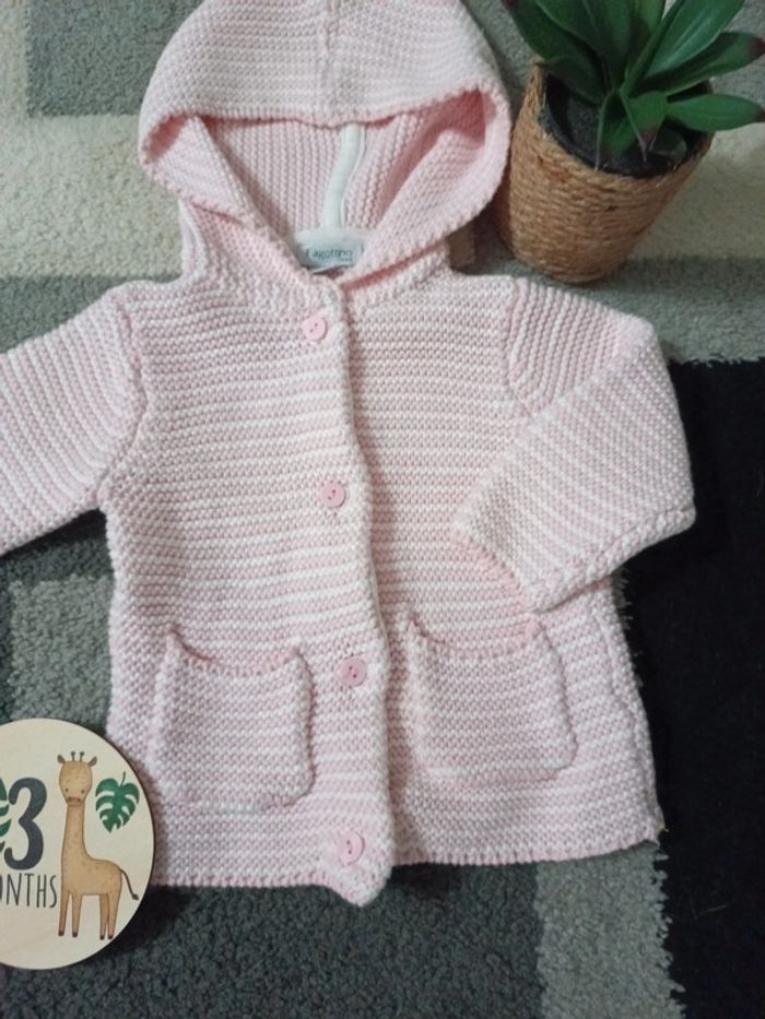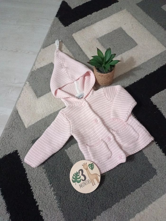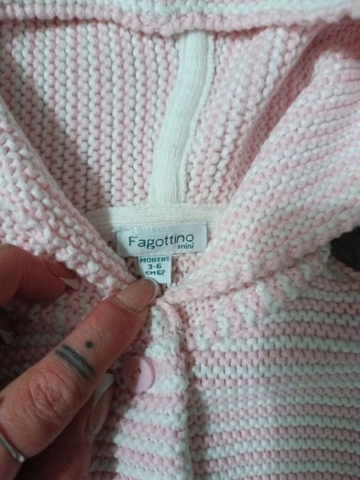 Gilet aspect petit lainage boutonnée, De couleur blanc et rose rayé, 2 petites poches et détail pointu avec pom-pom a la capuche. En très bon état, en taille 3Mois De la marque Fagottino 📦 Envois rapide et soignée. 📢 Remise activée jusqu'à 15%, et payé qu'un seul frais d'envois ! #Baby #Girl #Gilet #Rayé #Rose #3Month #Fagottino #tetell29_bbfilletaille3mois