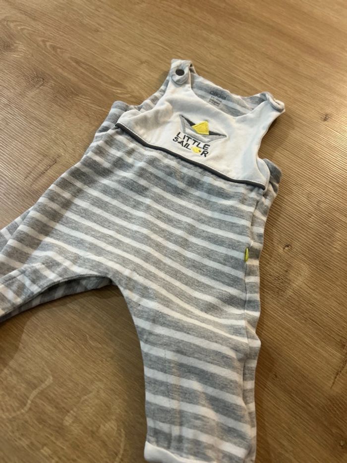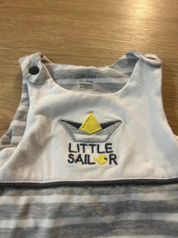 Salopette rayé grise et blanc avec motif bateau « Little Sailor ». Taille naissance 0 mois de la marque Obaïbi, Très bonne état. Matière : 90% coton, 5% viscose, et 5% elasthanne 📦 Envois rapide et soignée. 📢 Remise activée jusqu'à 15%, et payé qu'un seul frais d'envois ! #tetell29_bbprema00mois #Obaibi #Salopette #Naissance