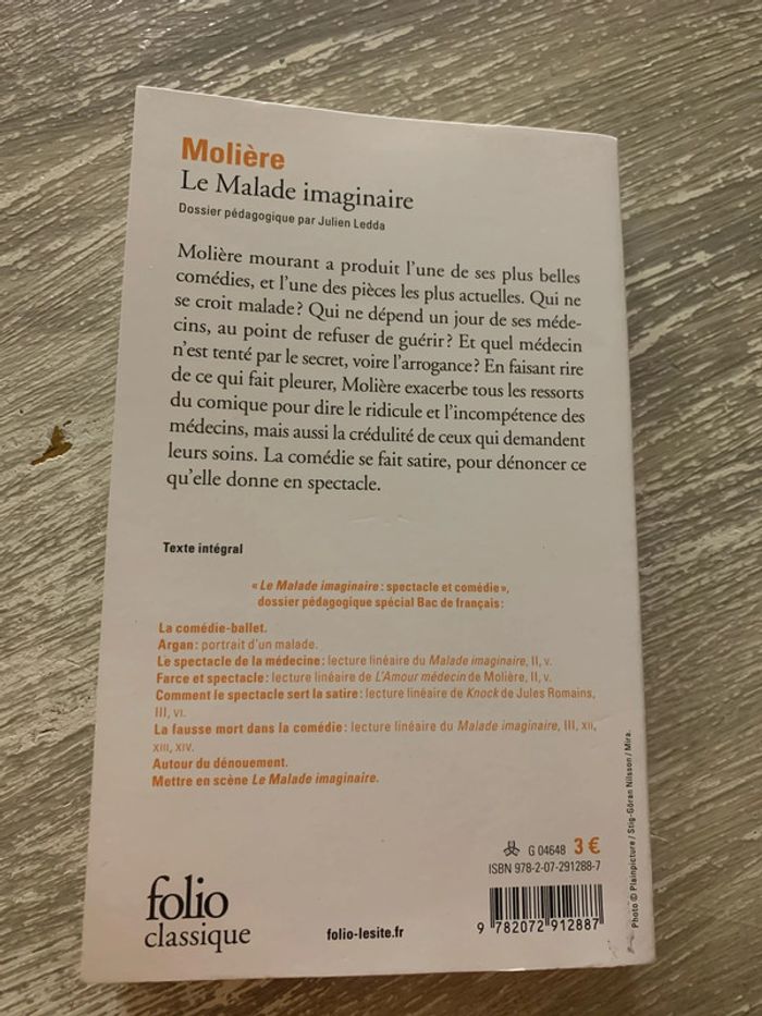 Le malade imaginaire de Molière. La première de couverture est abîmée.